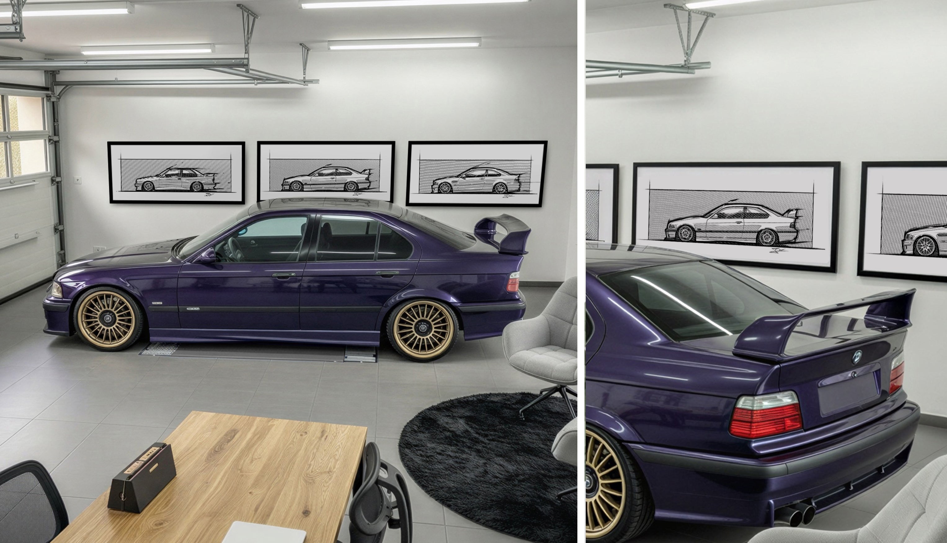 ...jeder Automobilenthusiast hat Lieblinge, für die sein Herz besonders stark schlägt. Diese nicht nur in der Garage zu haben, sondern auch an der Wand zu sehen, macht Freude. Als minimalistische Kunstdrucke im Skizzenstil passen unsere Bilder in jeden Einrichtungsstil.